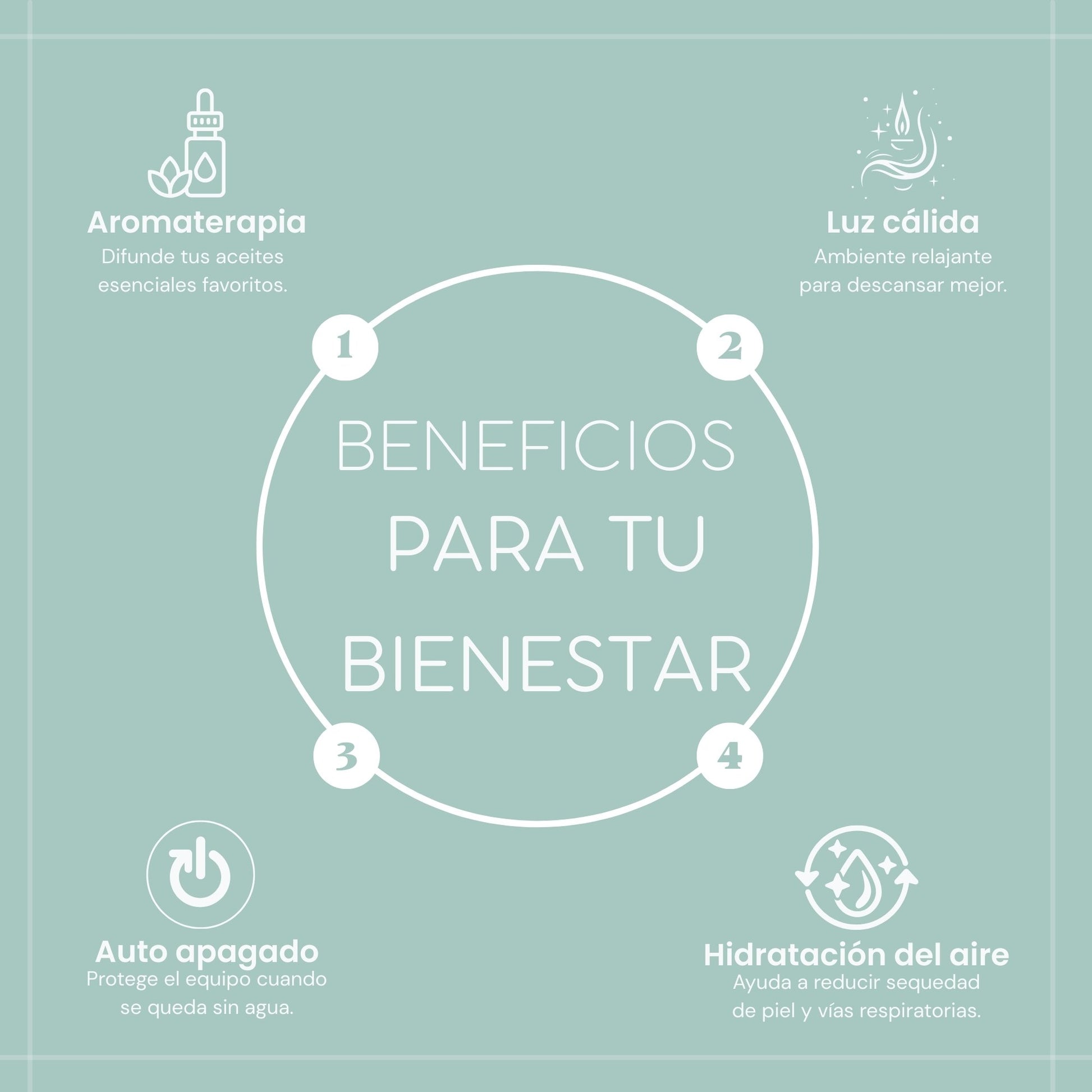 - 🌿 Aromaterapia – Compatible con aceites esenciales para un entorno más saludable y perfumado.
