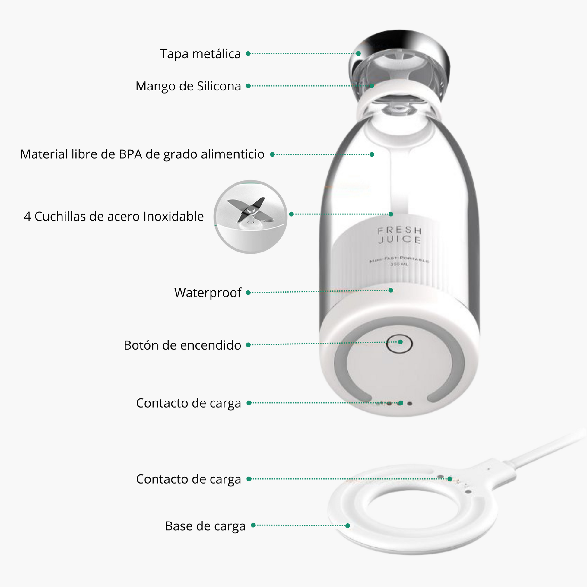 Licuadora Portátil Fresh Juice 350ml ¡Tu smoothie en 30 segundos, estés donde estés!